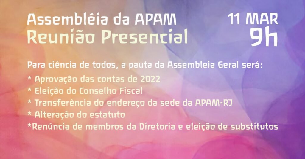 11/MAR – SÁBADO – ASSEMBLEIAS GERAIS ORDINÁRIA E EXTRAORDINÁRIA DA APAM-RJ