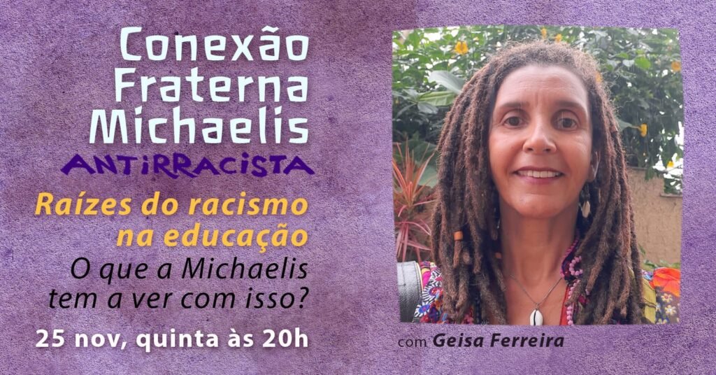 Na semana da consciência negra, teremos a última palestra do ano organizada pelo grupo Michaelis Antirracista, com a presença da pedagoga e mestre em educação Geisa Ferreira.
