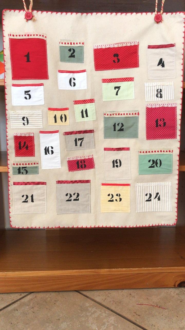 Materiais necessários para oficina de Calendário de Advento, você pode fazer seu calendário utilizando papel ou tecido: