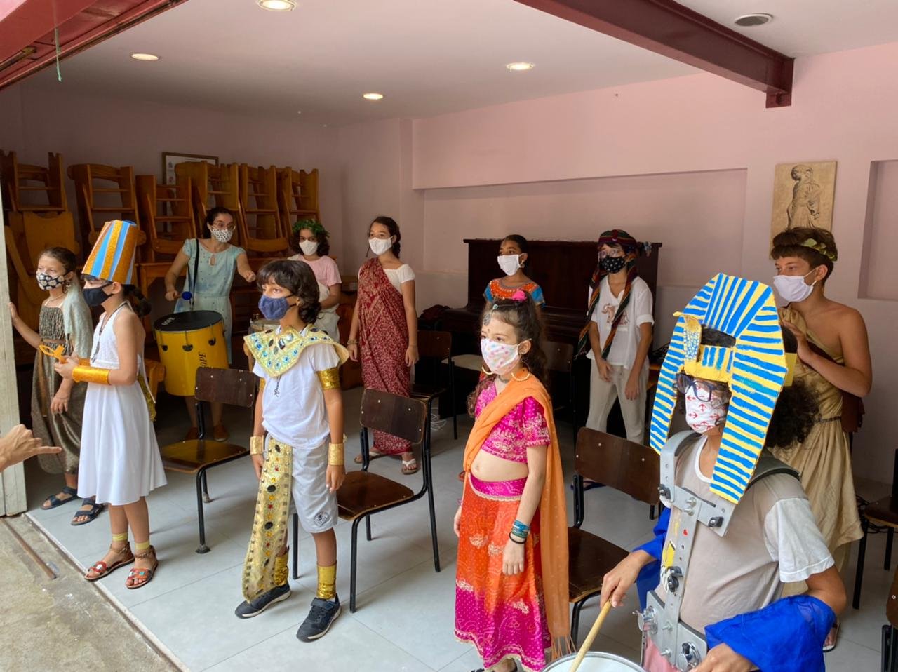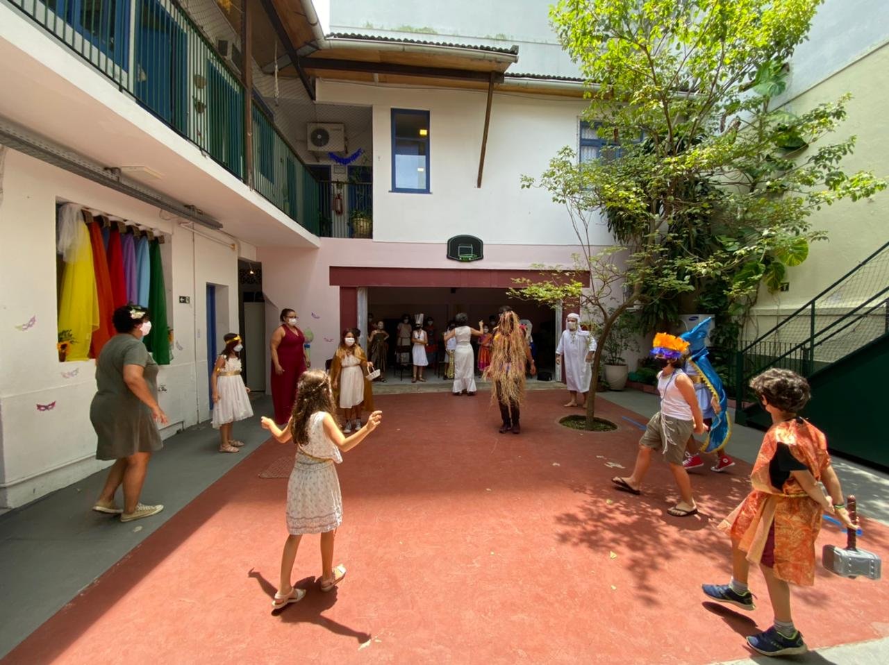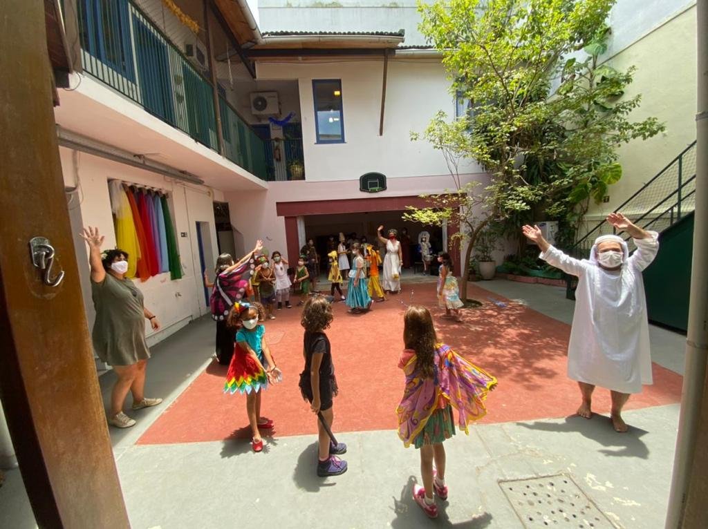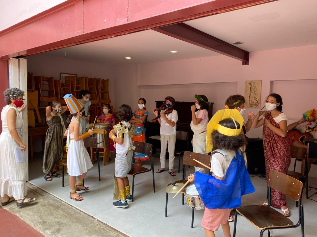 O Batuque Miguilim aconteceu em outros moldes, mais reduzido e seguindo as normas de distanciamento, porém não faltou animação e beleza. Cada turma celebrou separadamente no pátio, acompanhada pela banda formada pelo 5° ano, que tocou marchinhas de carnaval no salão, sob a batuta da professora Marilia.