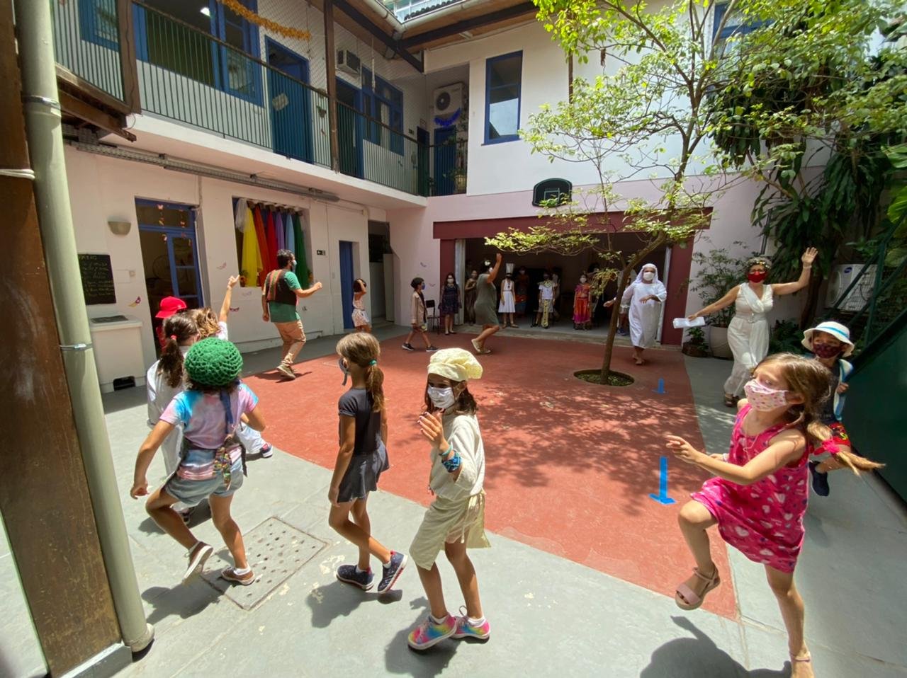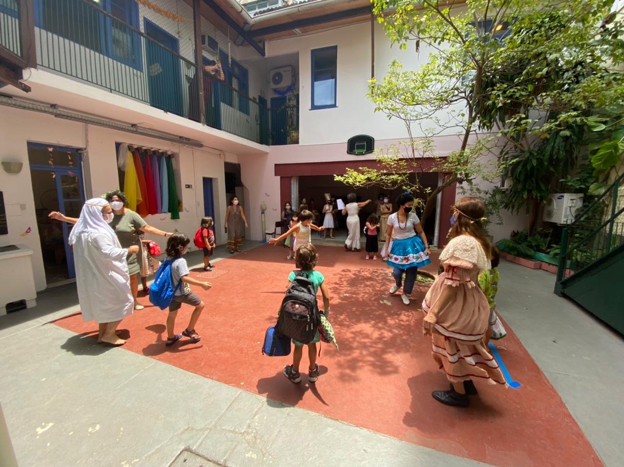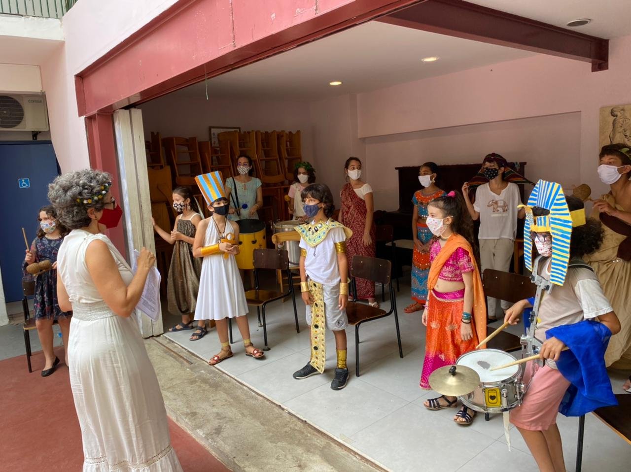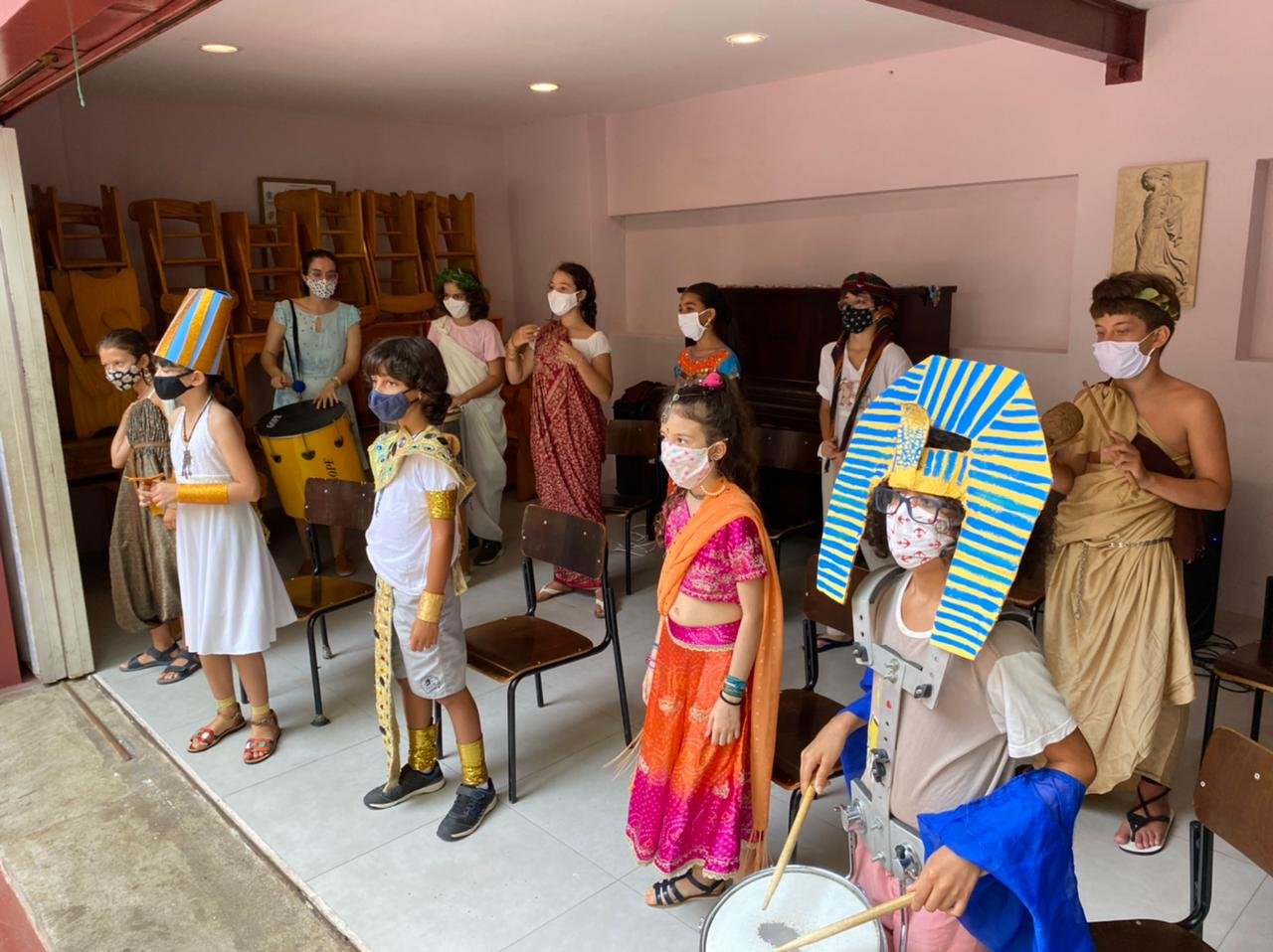 O Batuque Miguilim aconteceu em outros moldes, mais reduzido e seguindo as normas de distanciamento, porém não faltou animação e beleza. Cada turma celebrou separadamente no pátio, acompanhada pela banda formada pelo 5° ano, que tocou marchinhas de carnaval no salão, sob a batuta da professora Marilia.