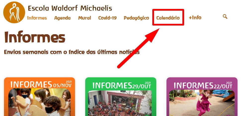 O calendário escolar está sempre a um click de distância pelo MENU PRINCIPAL do Informes: