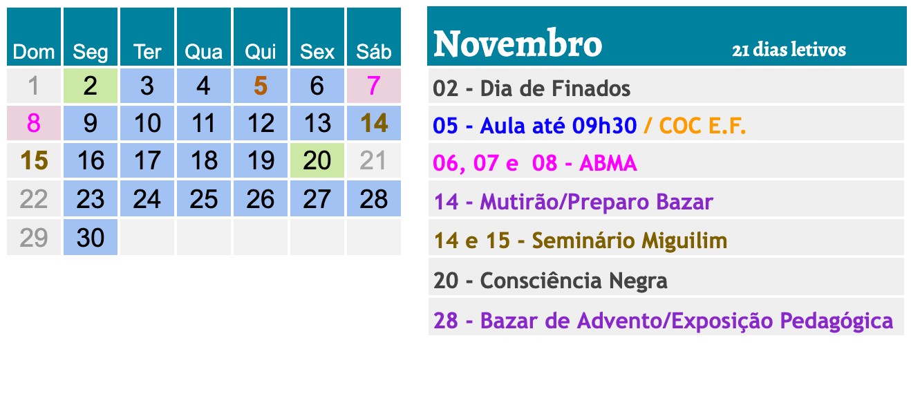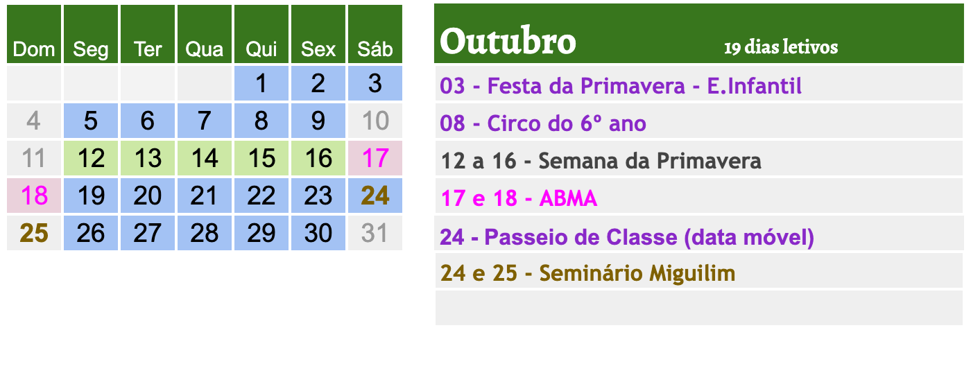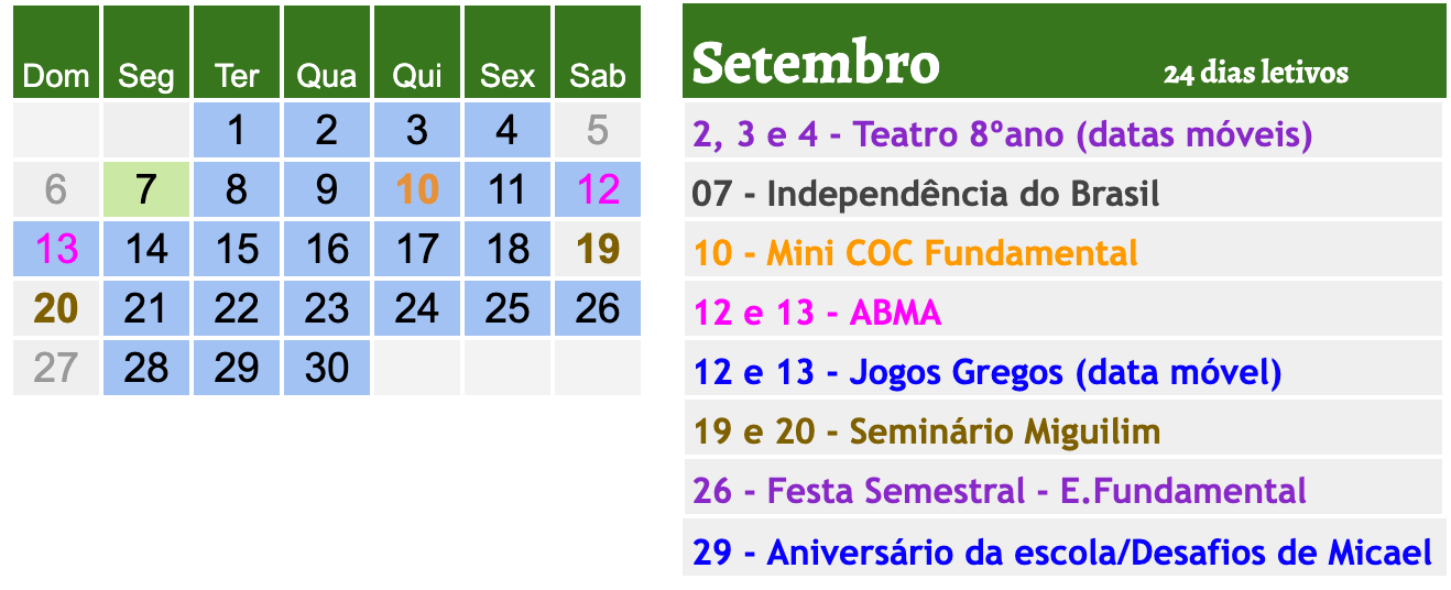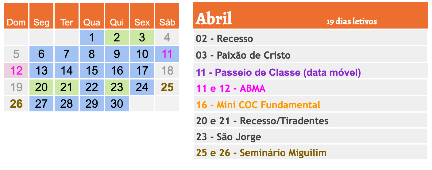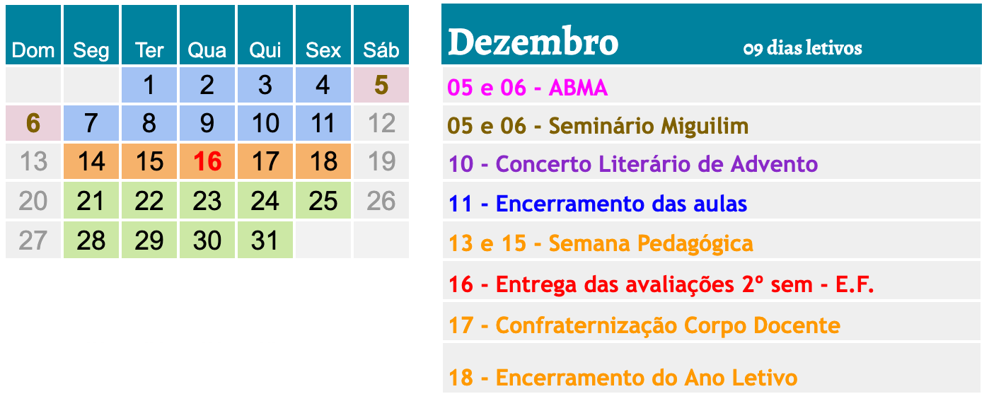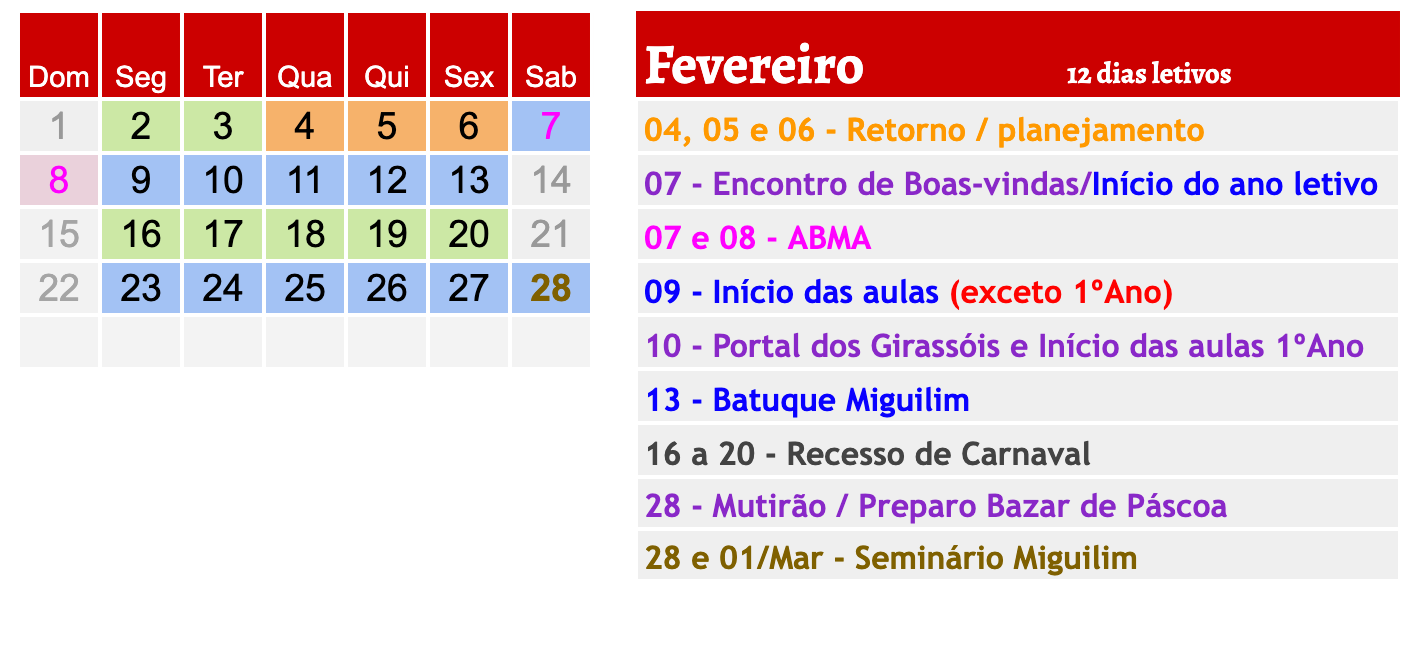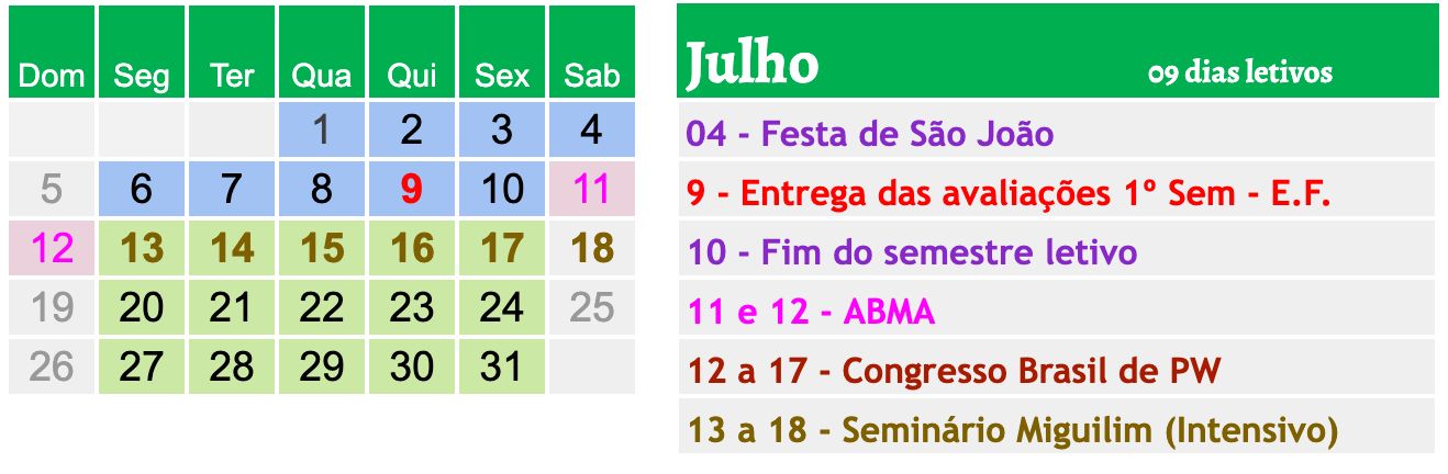 - Acrescentadas as datas do Seminário Miguilim em todos os meses exceto Janeiro.