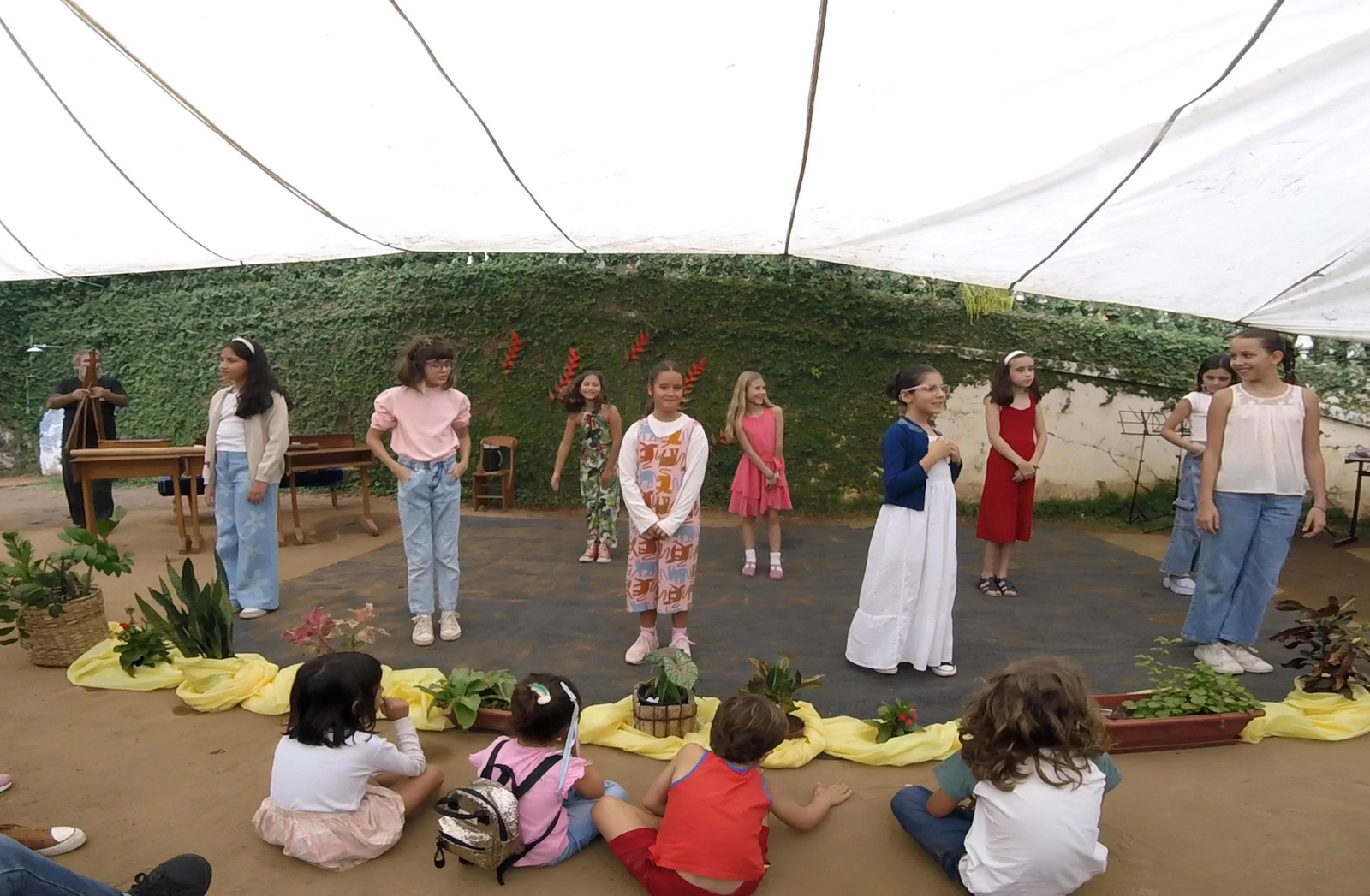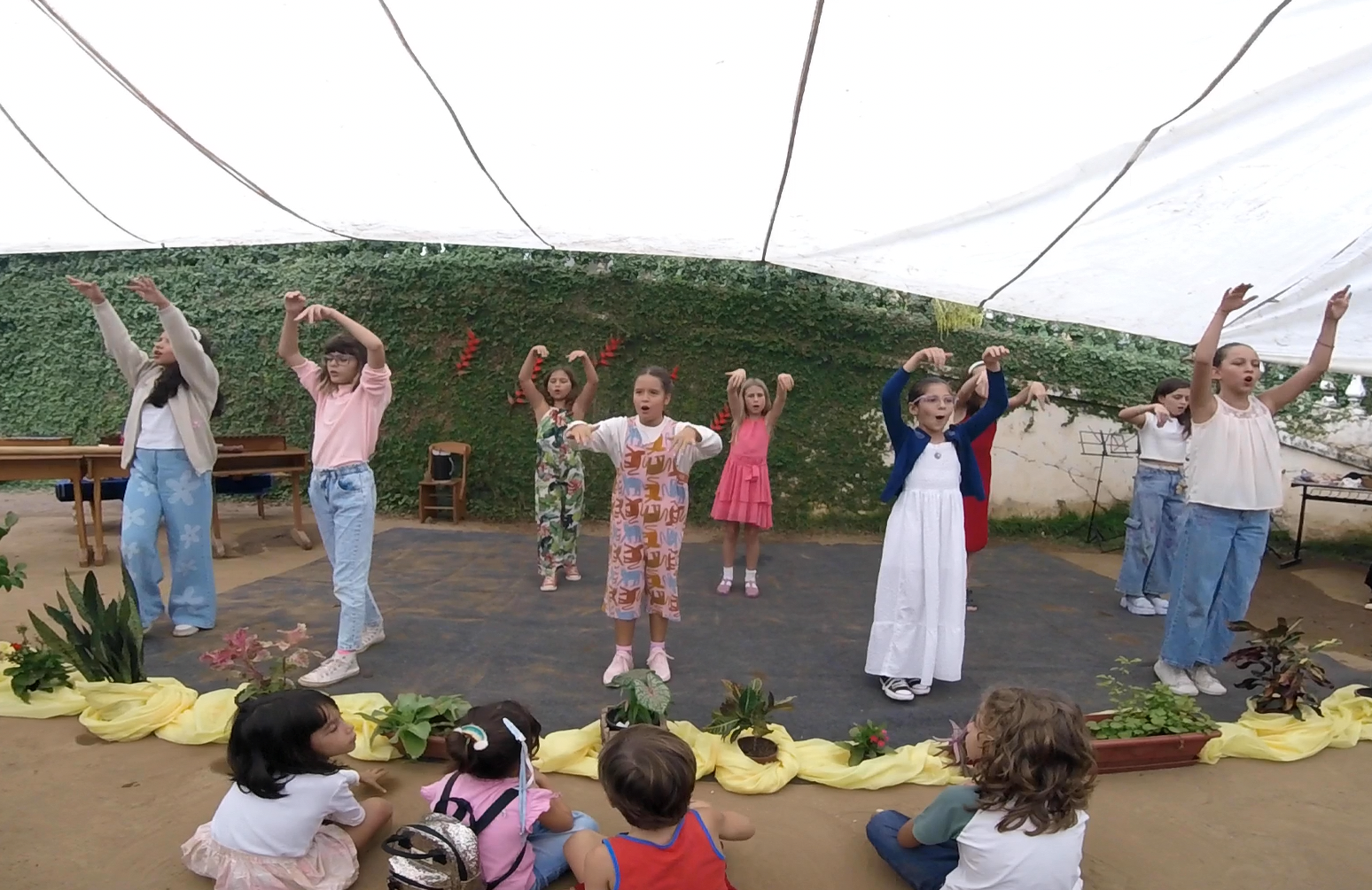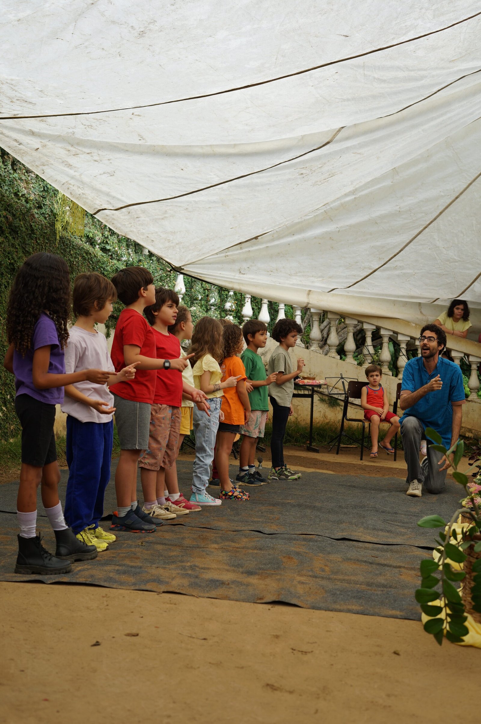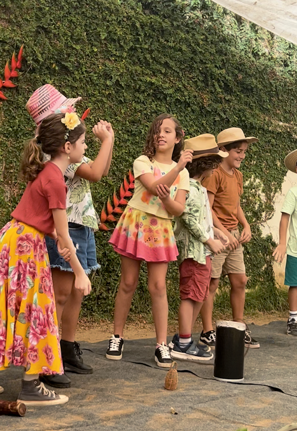 Em seguida, o 3° ano, guiado pela professora Thamires, apresentou uma roda com verso e canção sobre o plantio, tema central da vivência deste grupo, que se conecta com o trabalho da terra e com os ciclos da natureza.