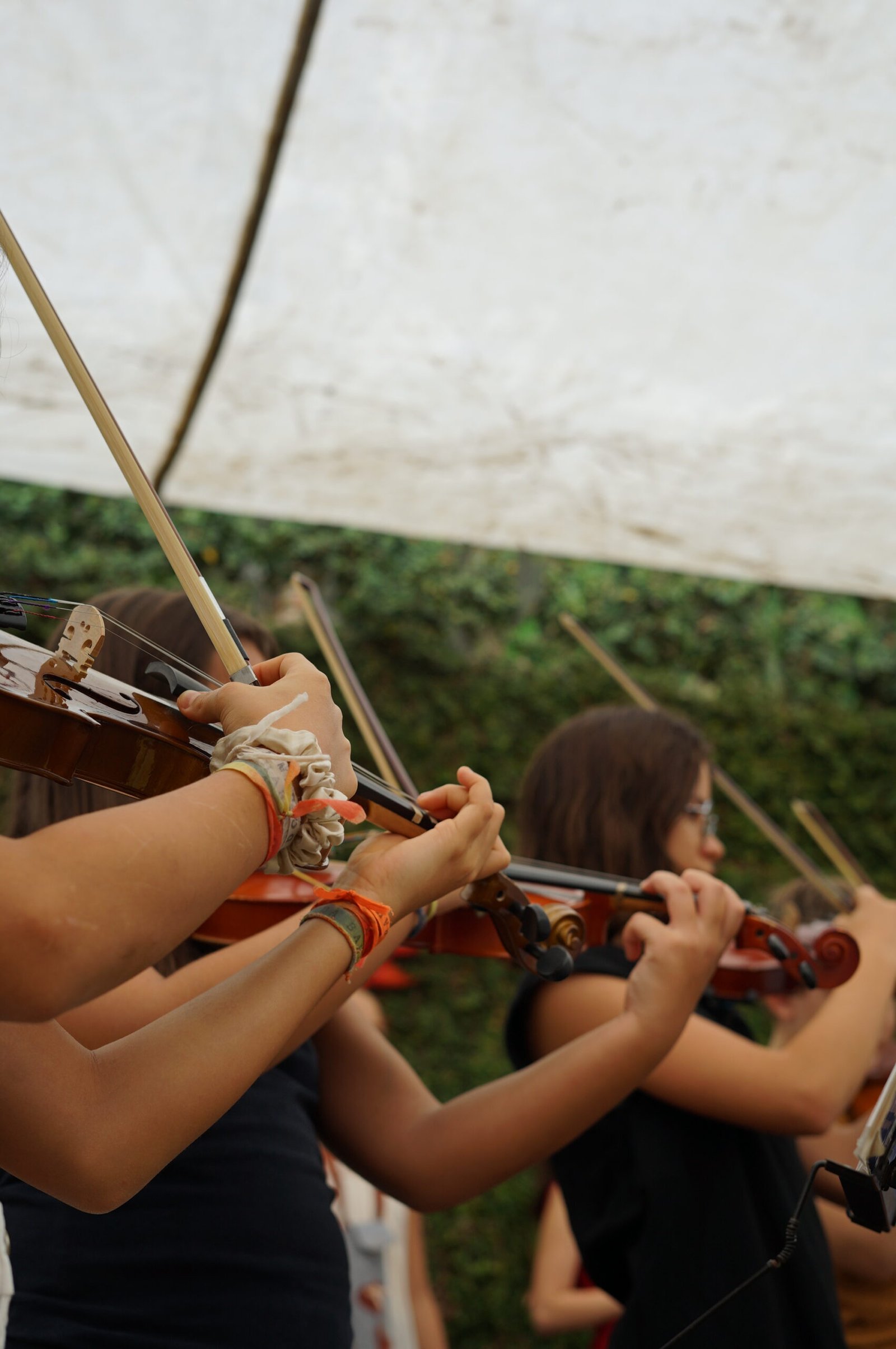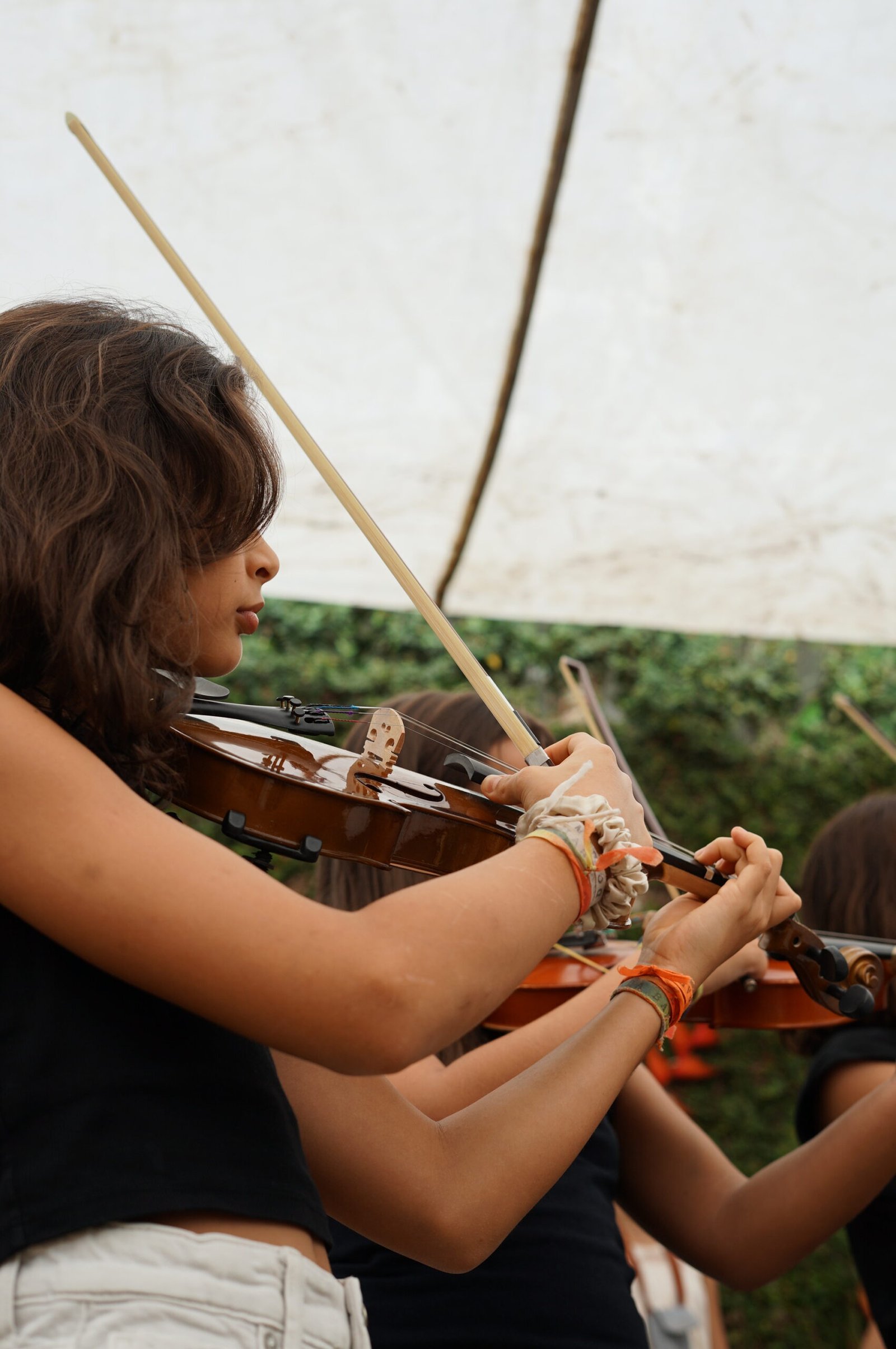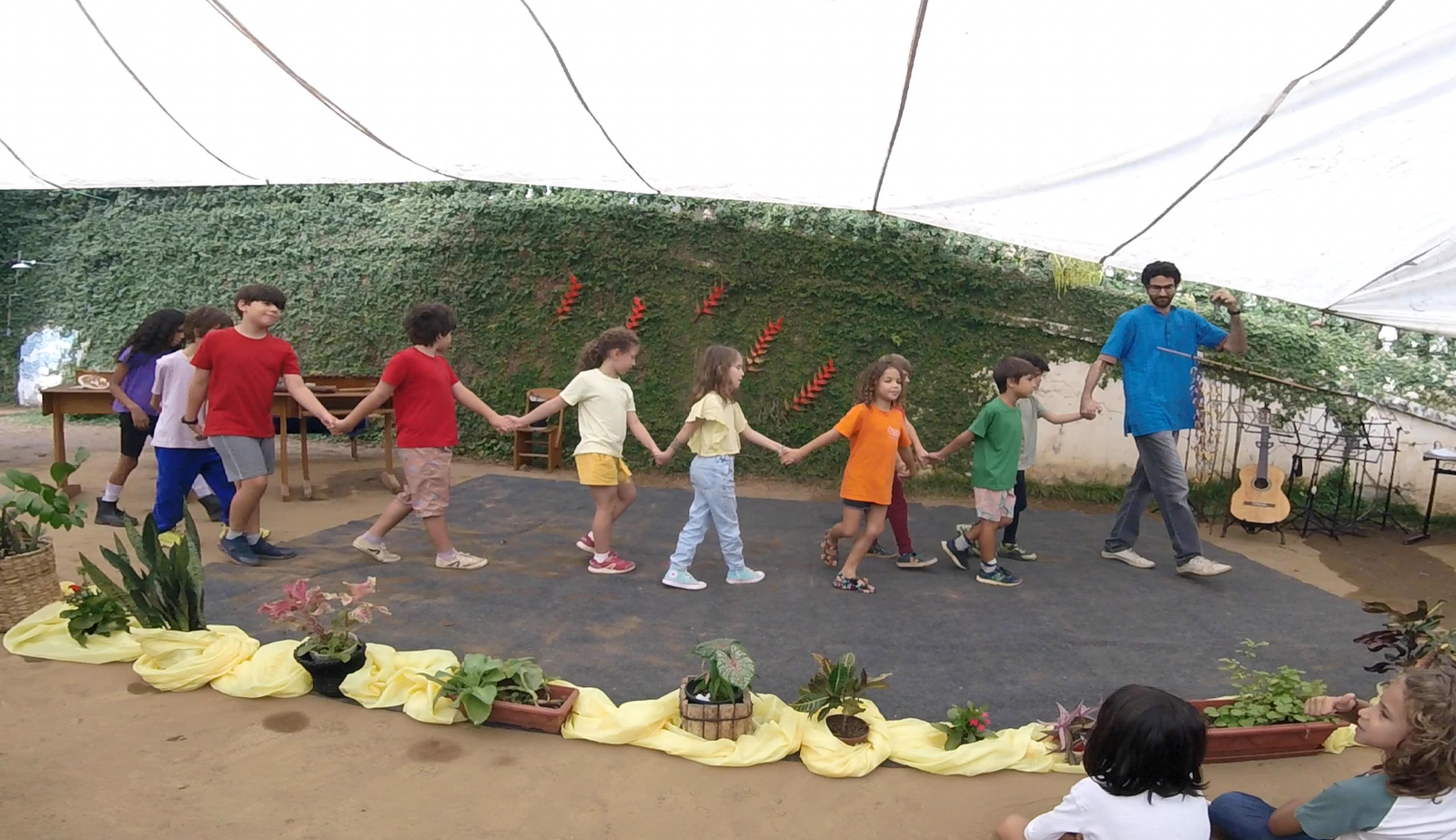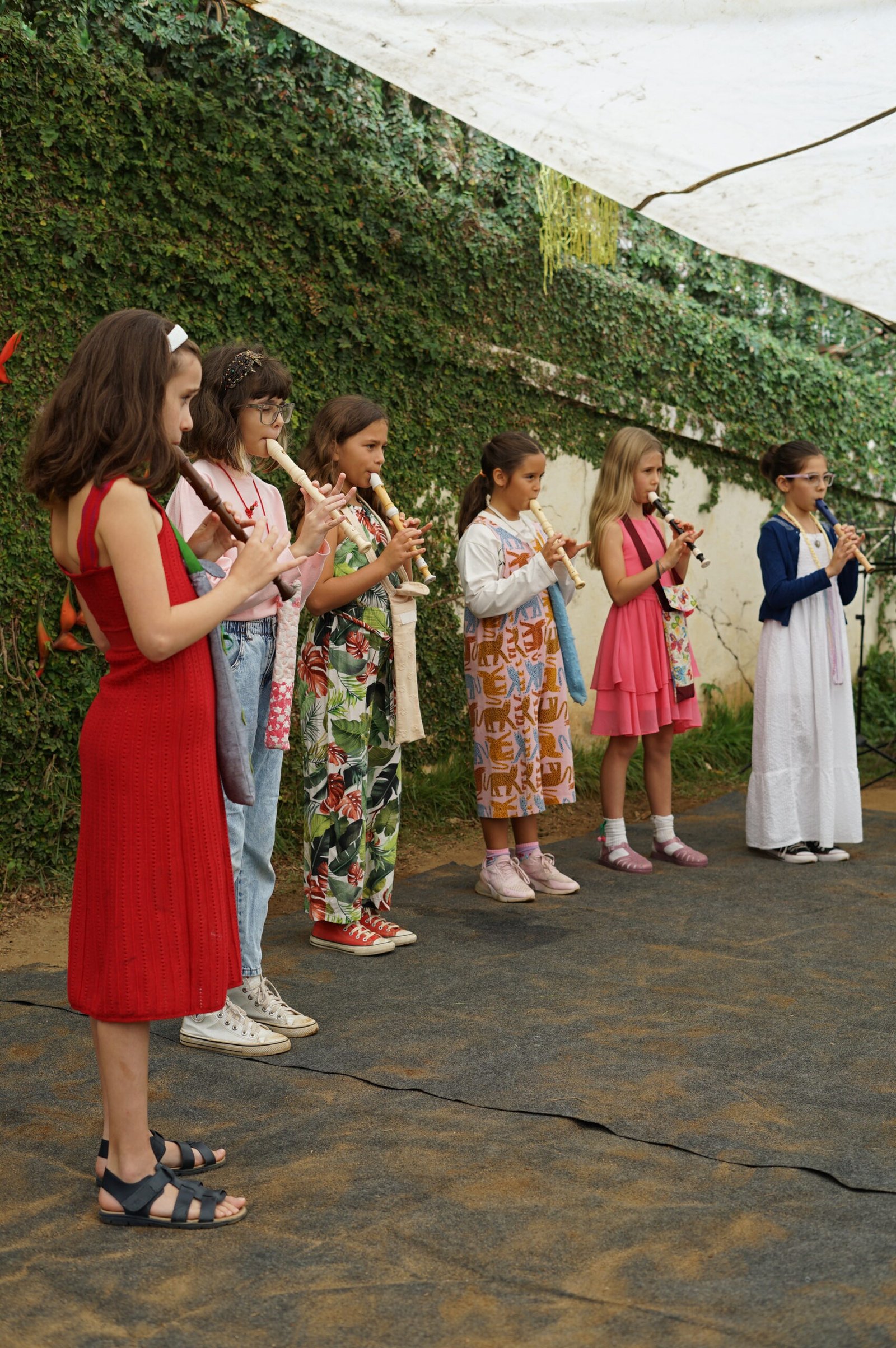 A manhã se iniciou com a apresentação conjunta do 2° e 3° anos, conduzida pela professora de música Marília. As crianças contaram e musicaram “A História da Sementinha”, utilizando flauta doce, percussão e kânteles.