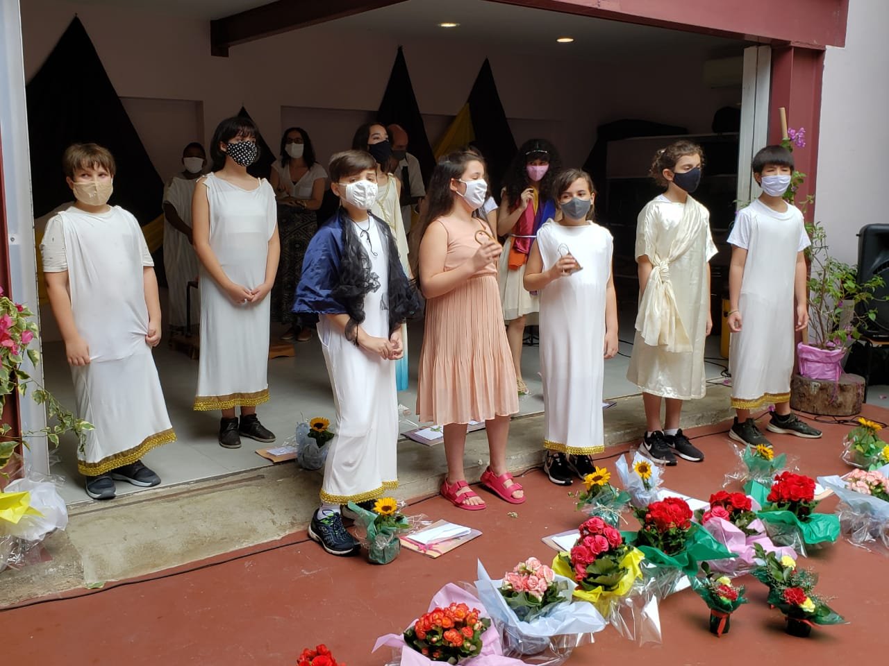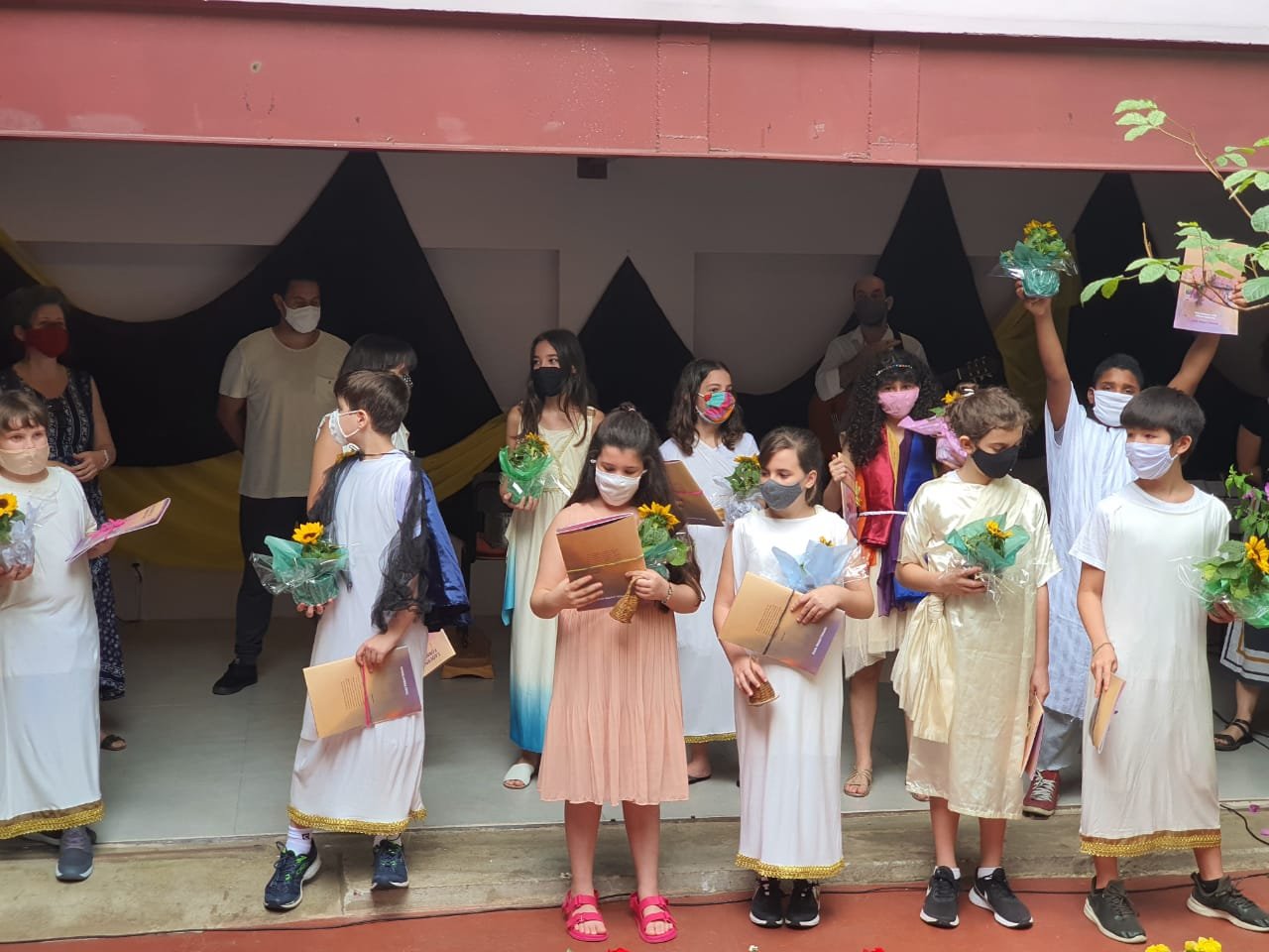 As crianças apresentaram canções e uma peça de teatro com trechos do texto Deméter e Perséfone de Ruth Salles. Houve homenagens e muita emoção. Sentiremos muitas saudades e desejamos um caminho de muito aprendizado e alegria!