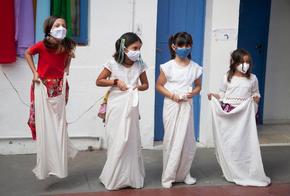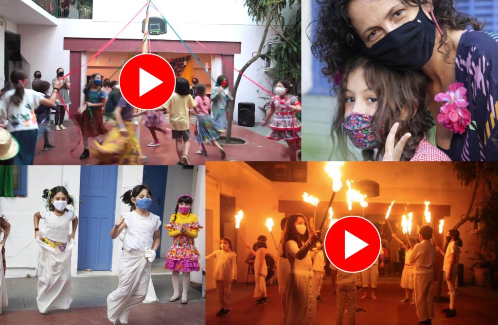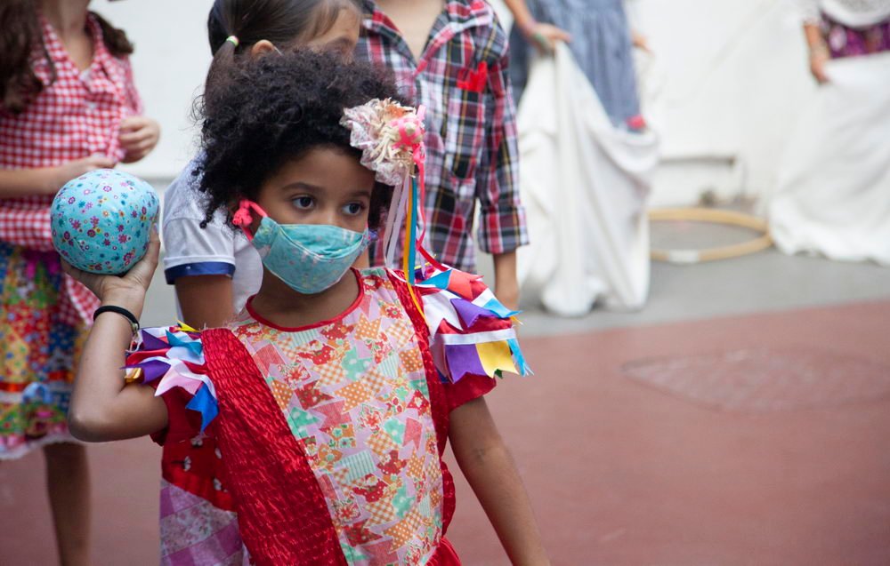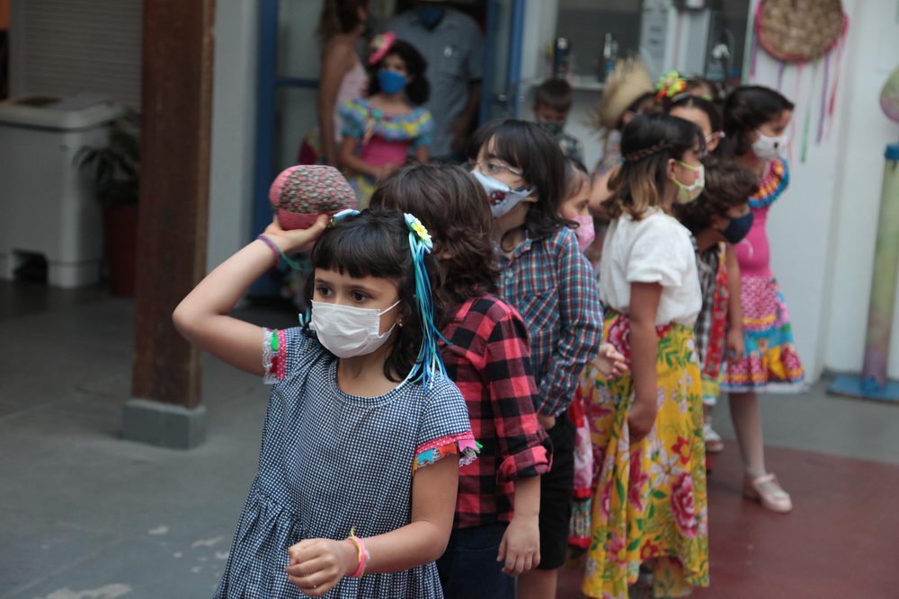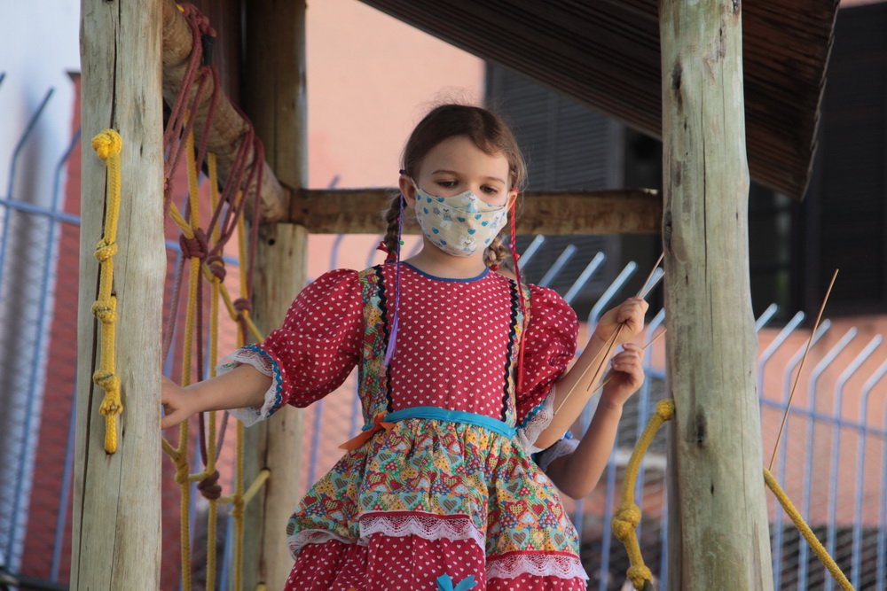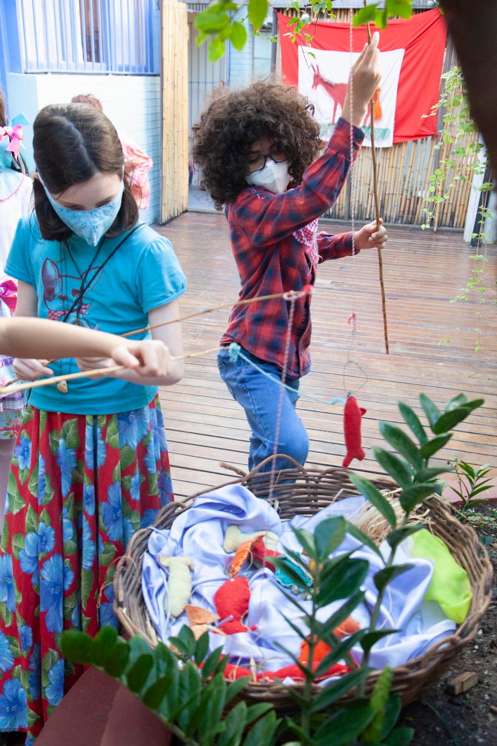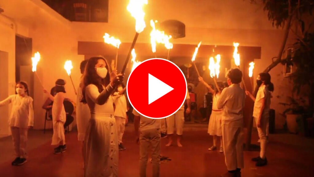 Encerramento da festa com o 5° ano carregando corajosamente as tochas acesas!