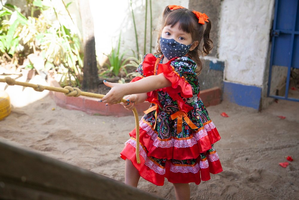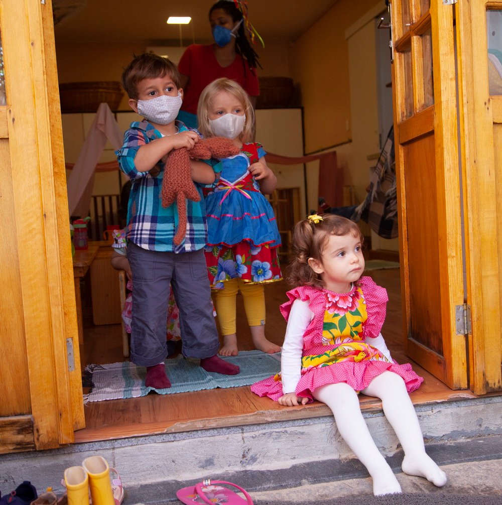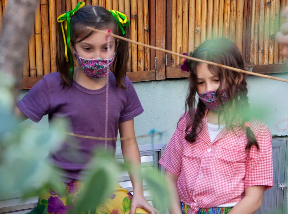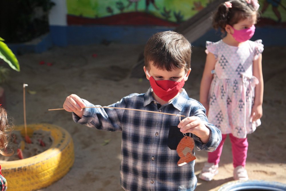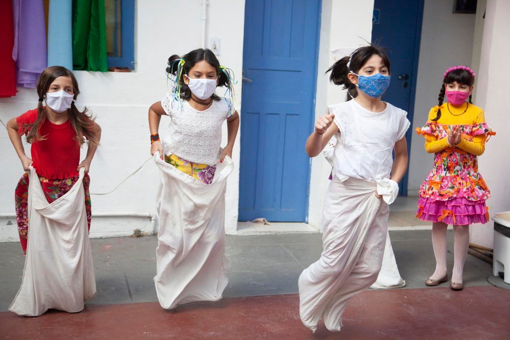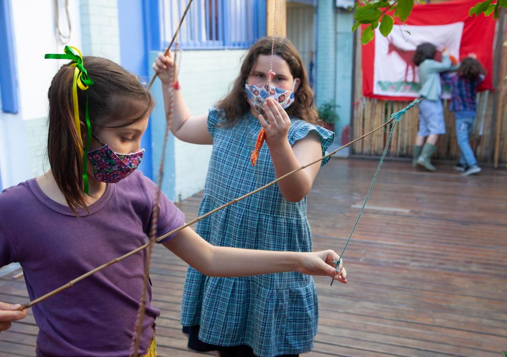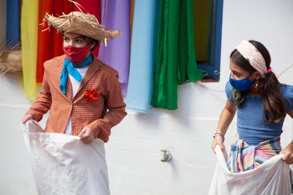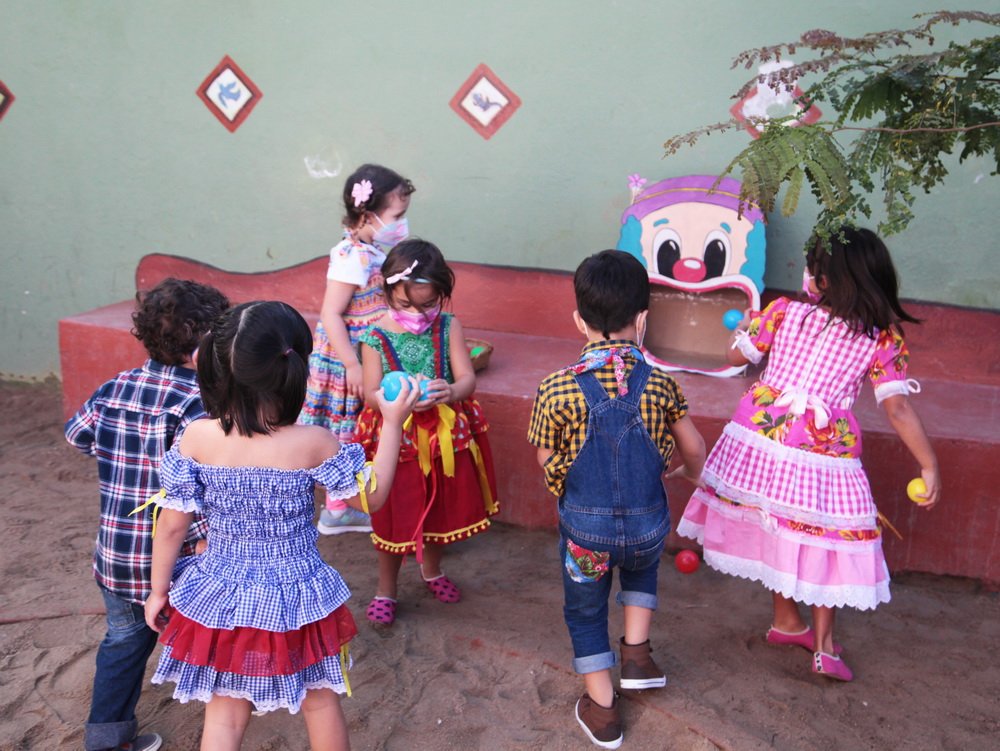 Encerramento da festa com o 5° ano carregando corajosamente as tochas acesas!
