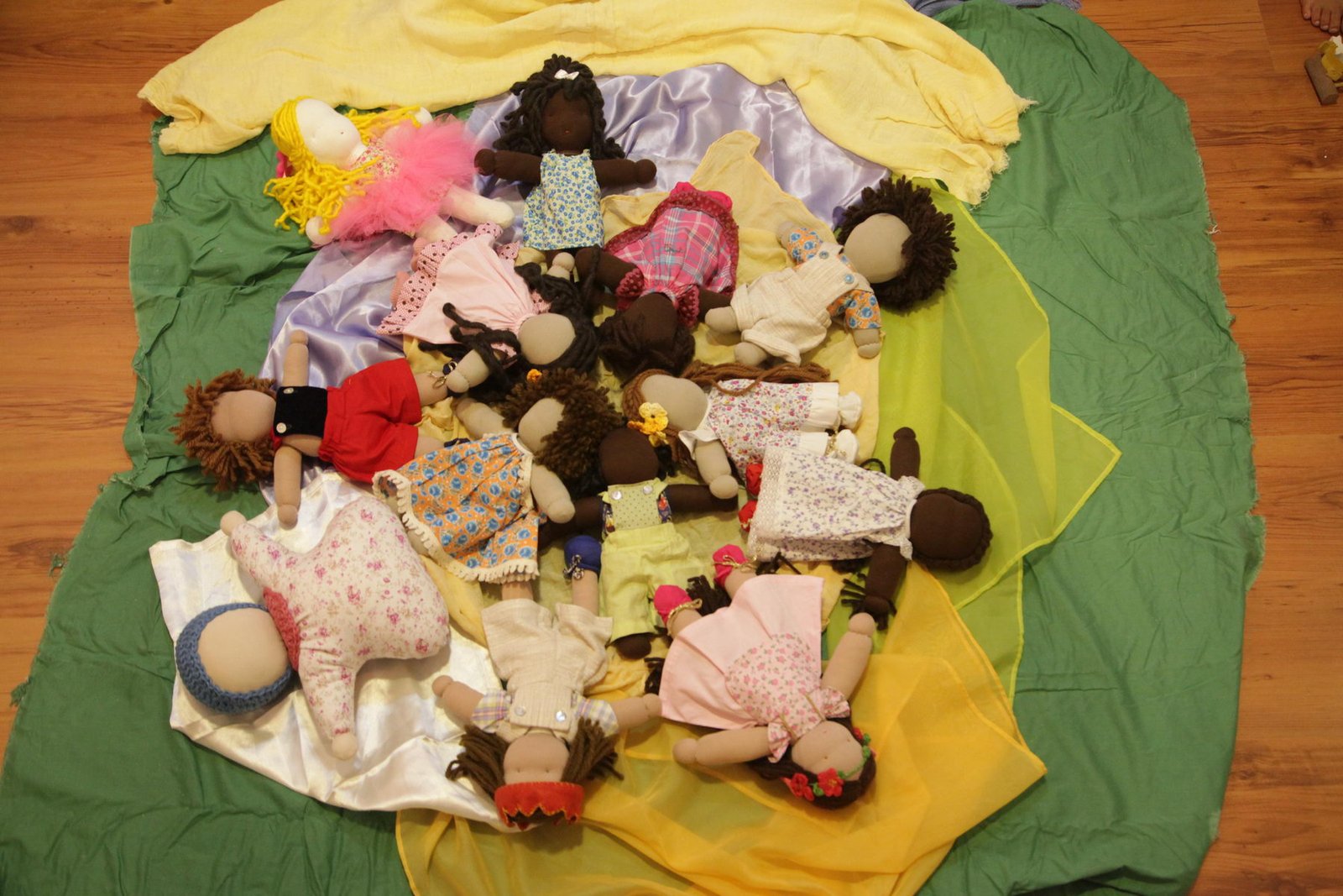 Para atender ao momento de expansão da Escola e nutrir nossas crianças com um brinquedo tão essencial na infância, um grupo de mães e professoras se reuniu em dois dias de oficinas para confecção de bonecas e bonecos. Esther Barki, mãe da Michaelis, ofereceu com generosidade e delicadeza as oficinas, orientando a feitura dos bonecos.