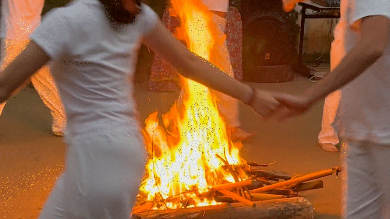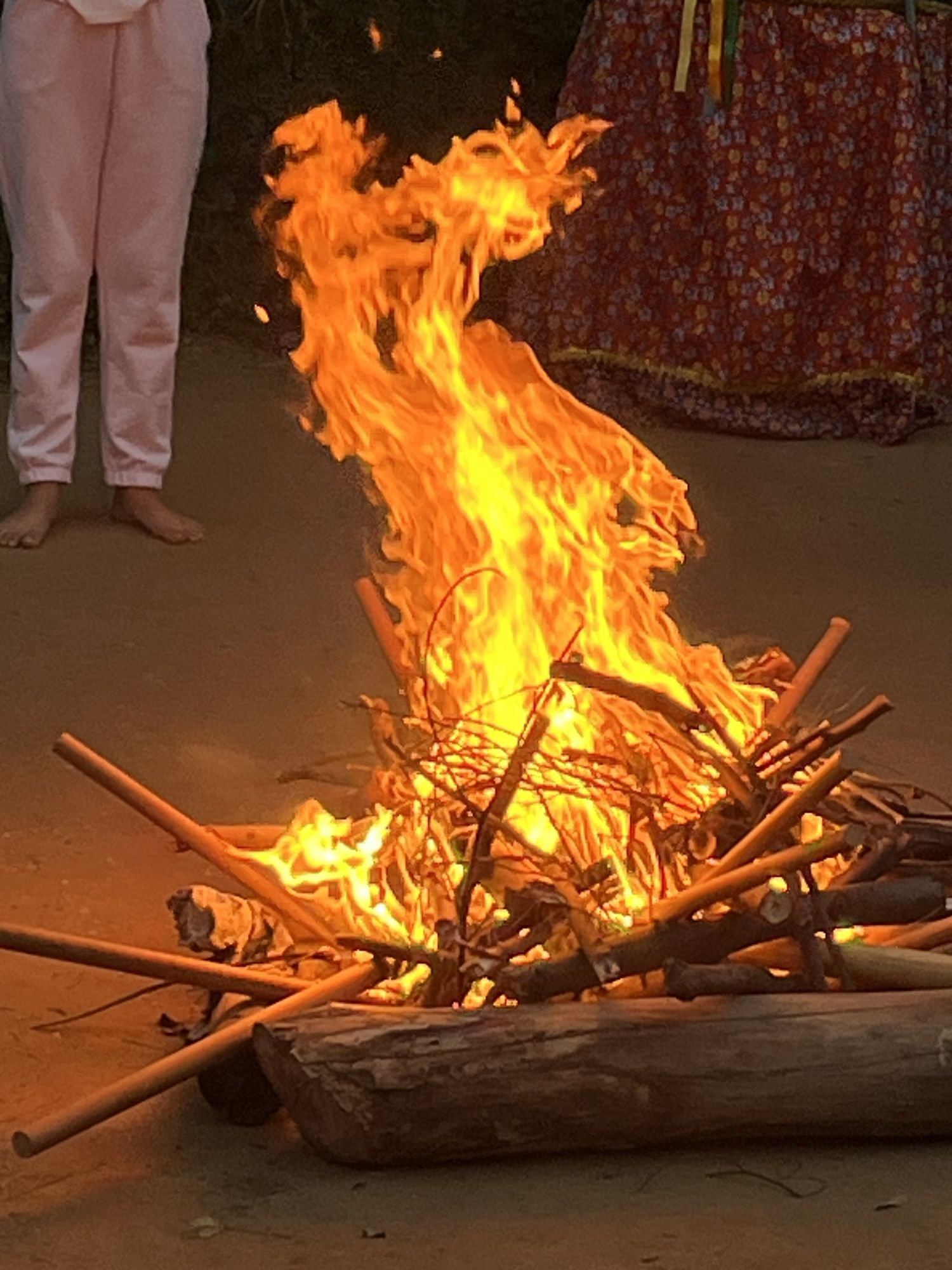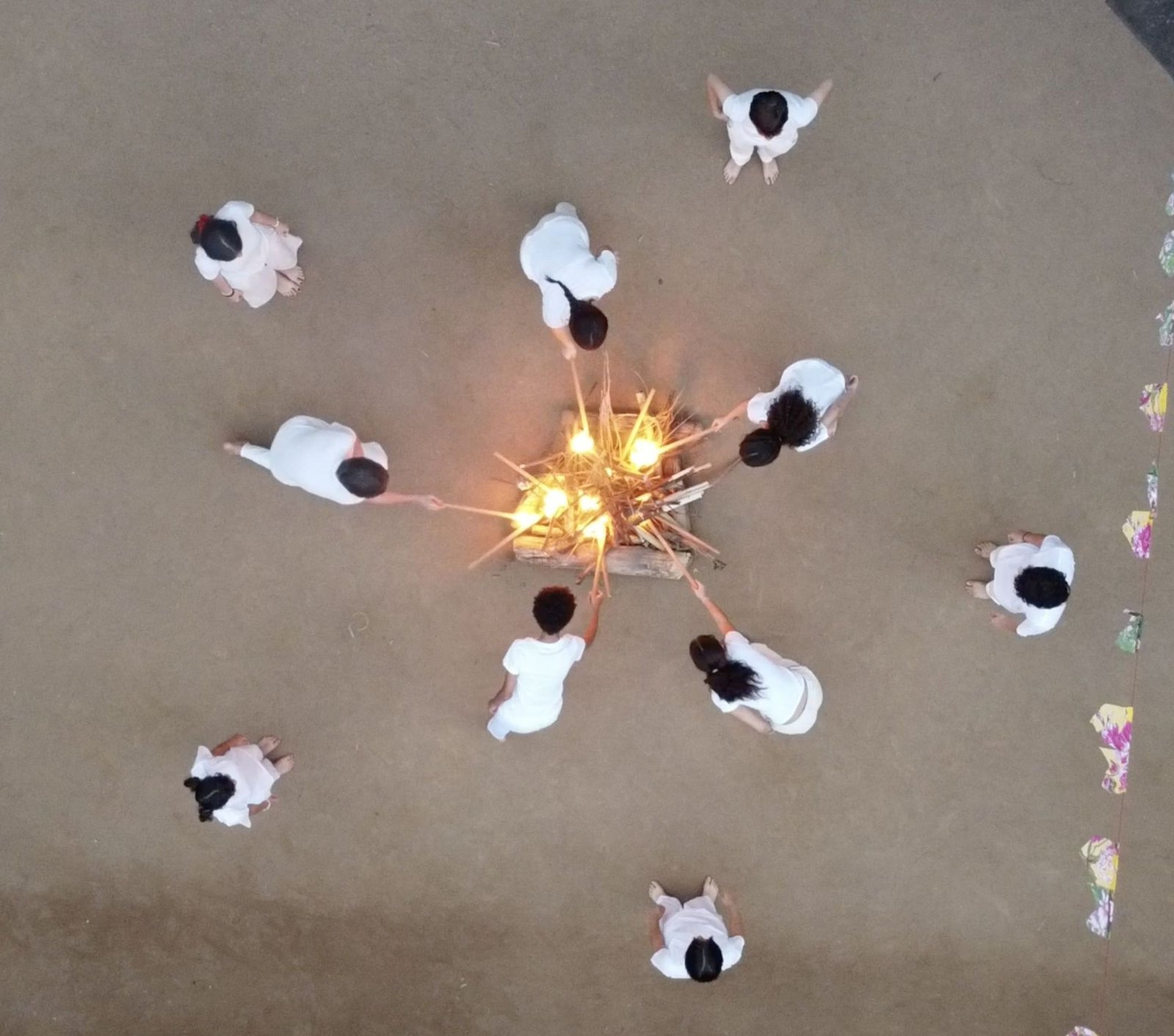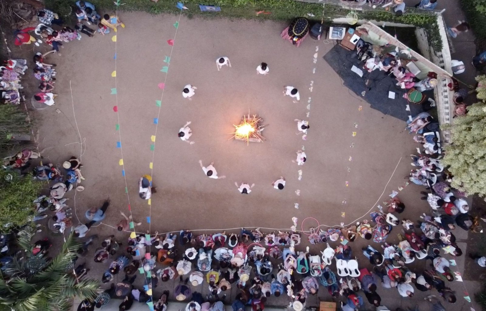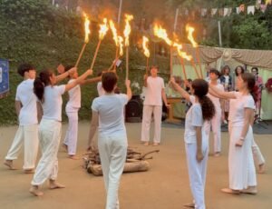Ritual de acender a fogueira pelo 8°ano na festa de São João da Escola Waldorf Michaelis de 2025.