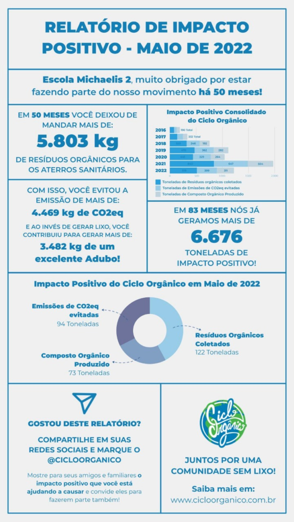 Recebemos a gratificante mensagem do Ciclo Orgânico de que nossa escola e os integrantes de nossa comunidade que se associaram conjuntamente ao programa de coleta seletiva, em 50 meses, evitou que 5.803 kg de resíduos orgânicos fossem parar nos aterros e lixões! ♻️ 🤩