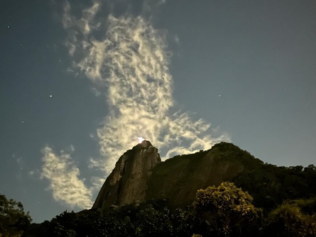 O Cristo Redentor na noite desta terça-feira, 03 de março de 2026