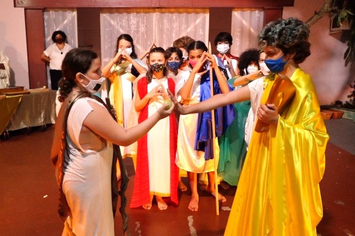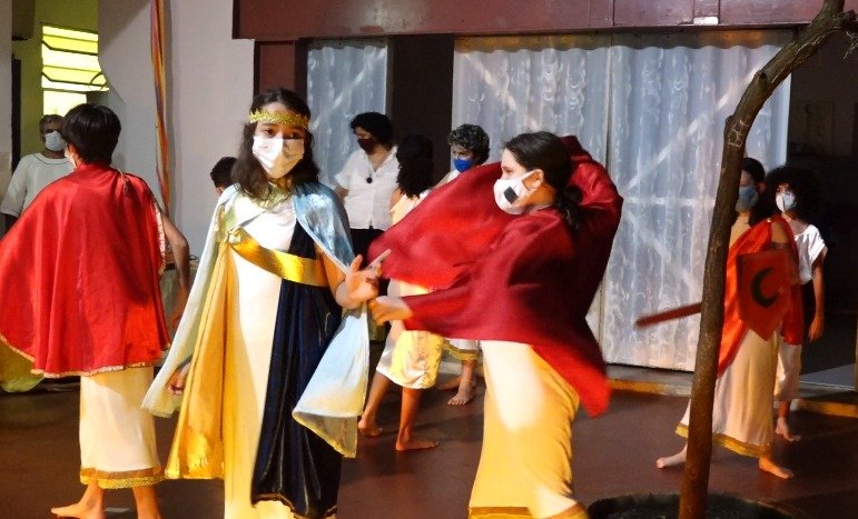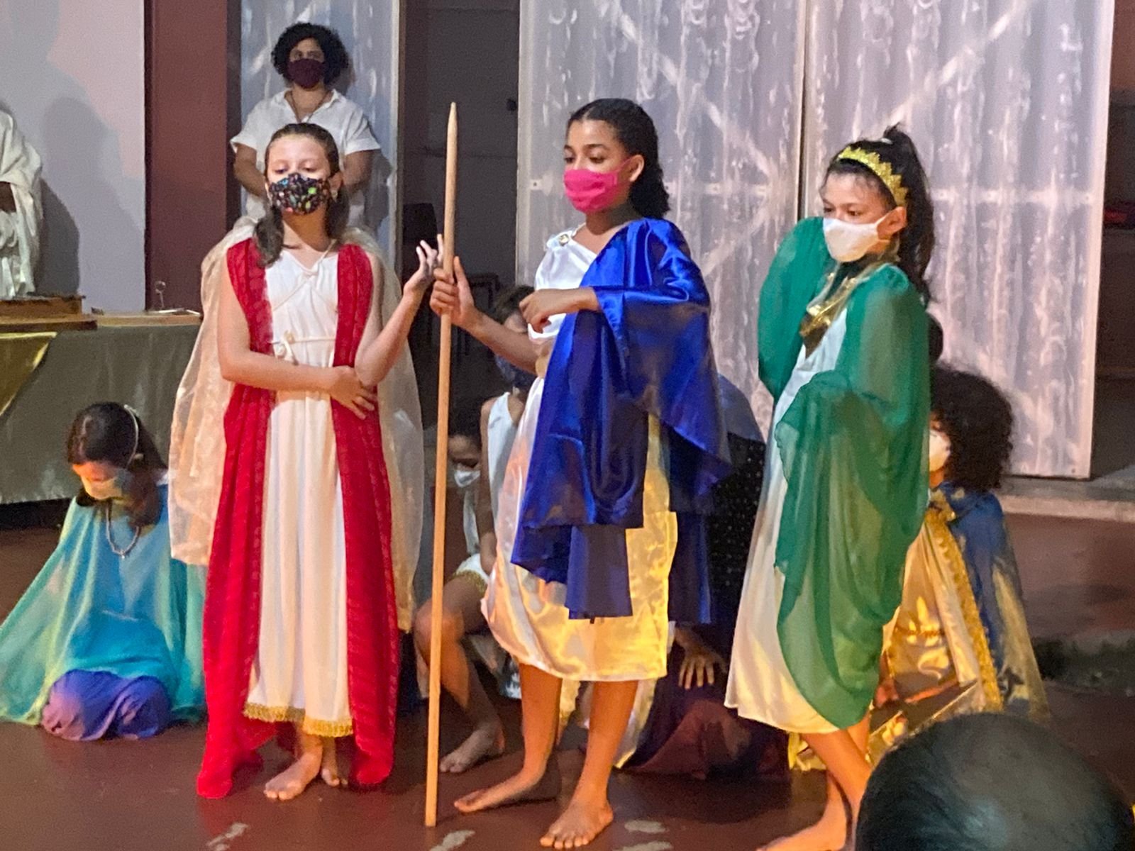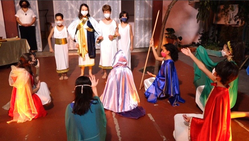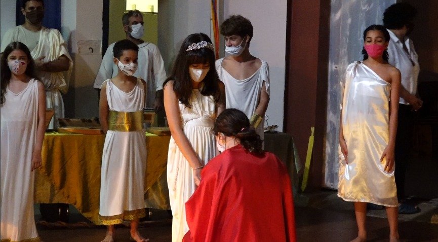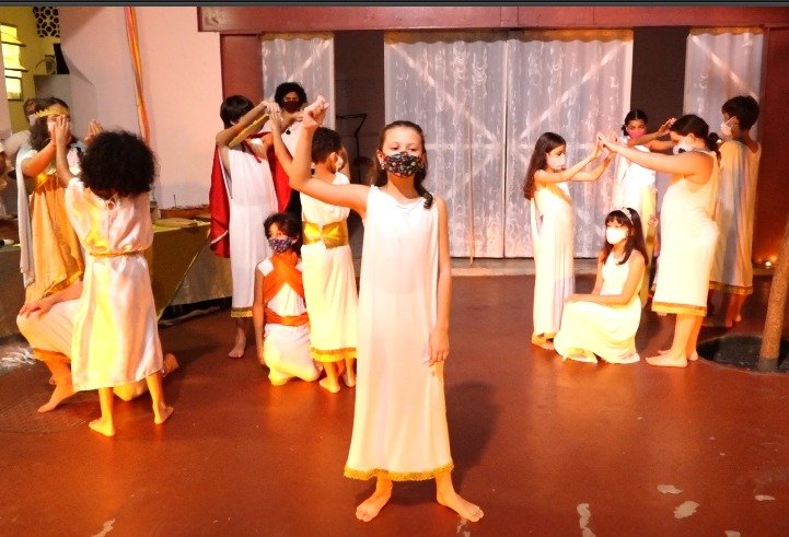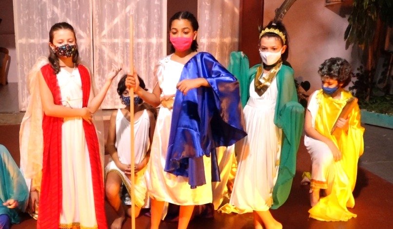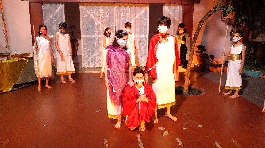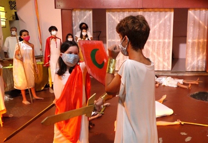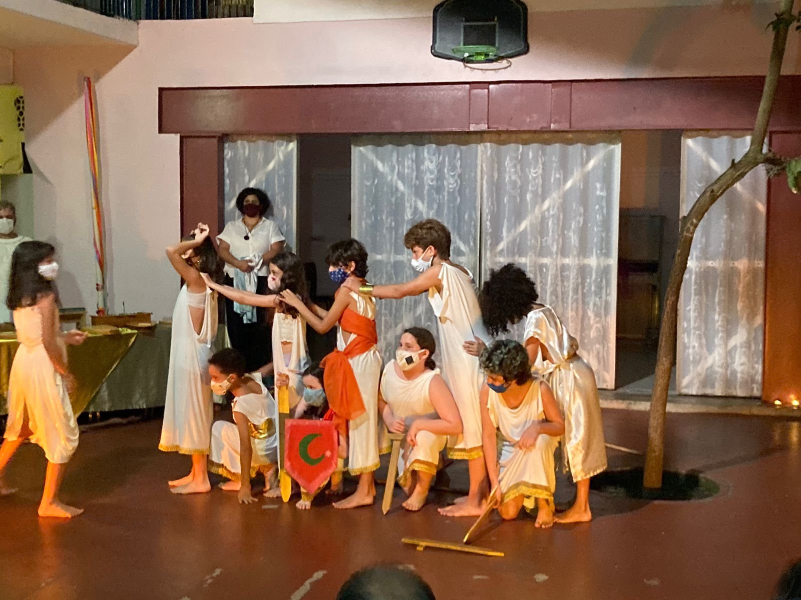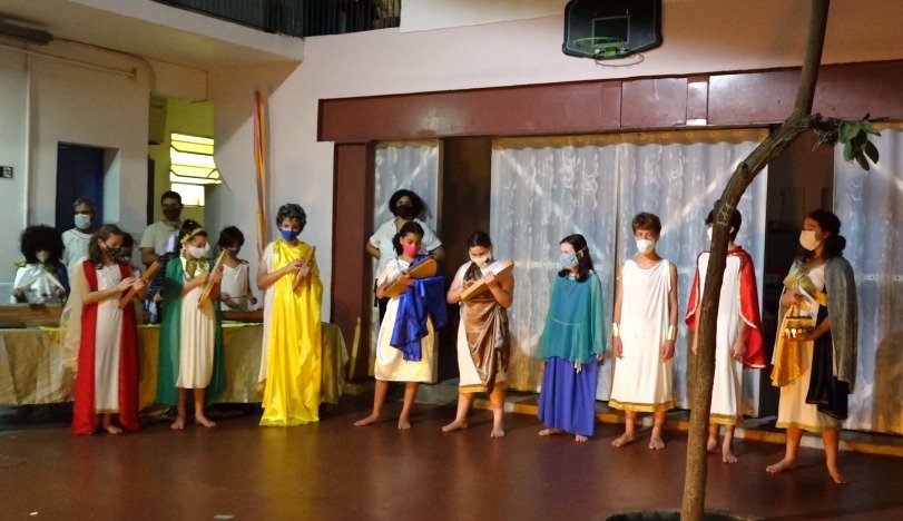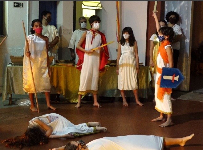 Na última sexta-feira, 10 de dezembro, a classe do quinto ano apresentou para suas famílias a peça Troia, inspirada na Ilíada, escrita pelo professor Plínio Marcos Rodrigues.