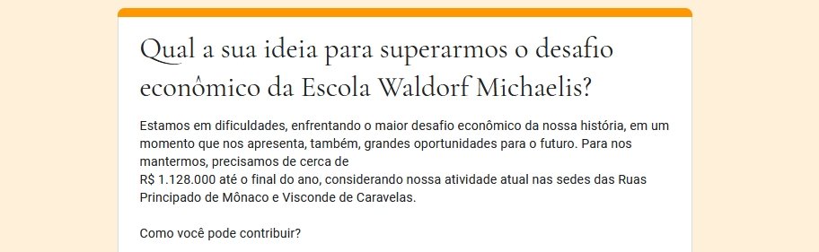 Temos certeza de que a única possibilidade de fazermos a nossa escola melhor e maior, é fortalecer a nossa comunidade e, principalmente, aumentar o nosso envolvimento com o dia a dia da escola. Nosso maior ativo são as nossas capacidades, criatividade, talentos e energia para fazer acontecer esse lugar fundamental para o desenvolvimento das nossas crianças, que são a principal motivação disto tudo.