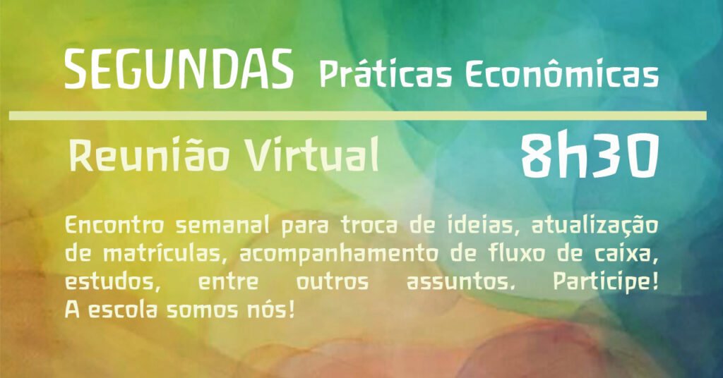 TODA SEGUNDA – 8h30 às 9h30 –  REUNIÃO GRUPO PRÁTICAS ECONÔMICAS